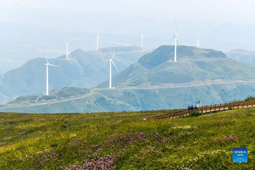 Turistas recorren un lugar pintoresco en el condado de Hezhang, en la provincia de Guizhou, suroeste de China, 3 de septiembre de 2021. El condado de Hezhang, que nos regala hermosos paisajes naturales y una cultura distintiva, ha intensificado sus esfuerzos para mejorar las instalaciones turísticas e impulsar la industria del turismo en años recientes. El desarrollo turístico del condado ha impulsado su revitalización rural. Las estadísticas muestran que el condado ha recibido 4,34 millones de viajes de visitantes de enero a agosto de este año.
