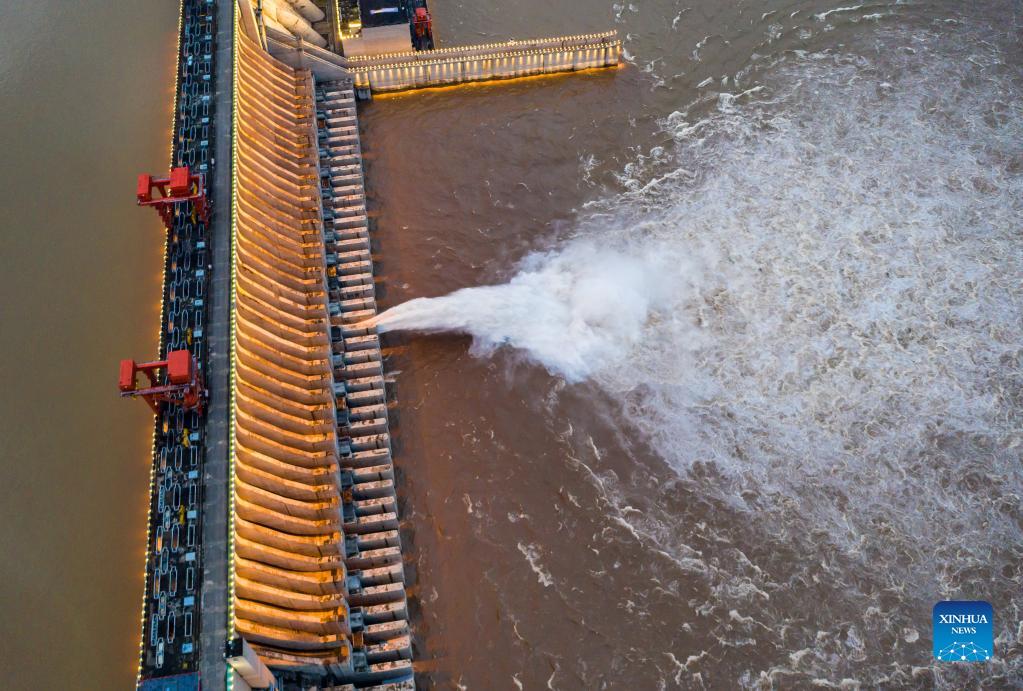 Fotografía del 6 de septiembre de 2021 de la presa de las Tres Gargantas en la provincia de Hubei, en el centro de China. Las autoridades chinas han adoptado medidas rigurosas contra las inundaciones a lo largo del río Yangtsé, a medida que los niveles de agua continúan aumentando después de las fuertes lluvias, indicó el lunes el Ministerio de Recursos Hídricos. El flujo de agua en el embalse de las Tres Gargantas ha aumentado rápidamente, alcanzando los 54.000 metros cúbicos por segundo a las 2 p.m. del lunes. El ministerio anunció que está manteniendo su respuesta en el Nivel IV y ha pedido más medidas contra las inundaciones en el embalse de las Tres Gargantas y otros proyectos principales a lo largo del río. China tiene un sistema de respuesta a emergencias de control de inundaciones de cuatro niveles, siendo el nivel I el más severo.