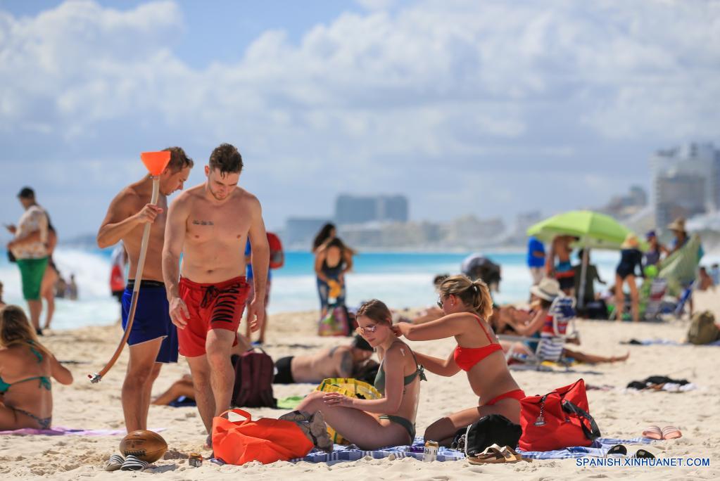 Personas disfrutan de su tiempo libre en la playa Gaviota Azul, en Cancún, estado de Quintana Roo, México, el 6 de noviembre de 2021. (Xinhua/Fito Valdéz)
