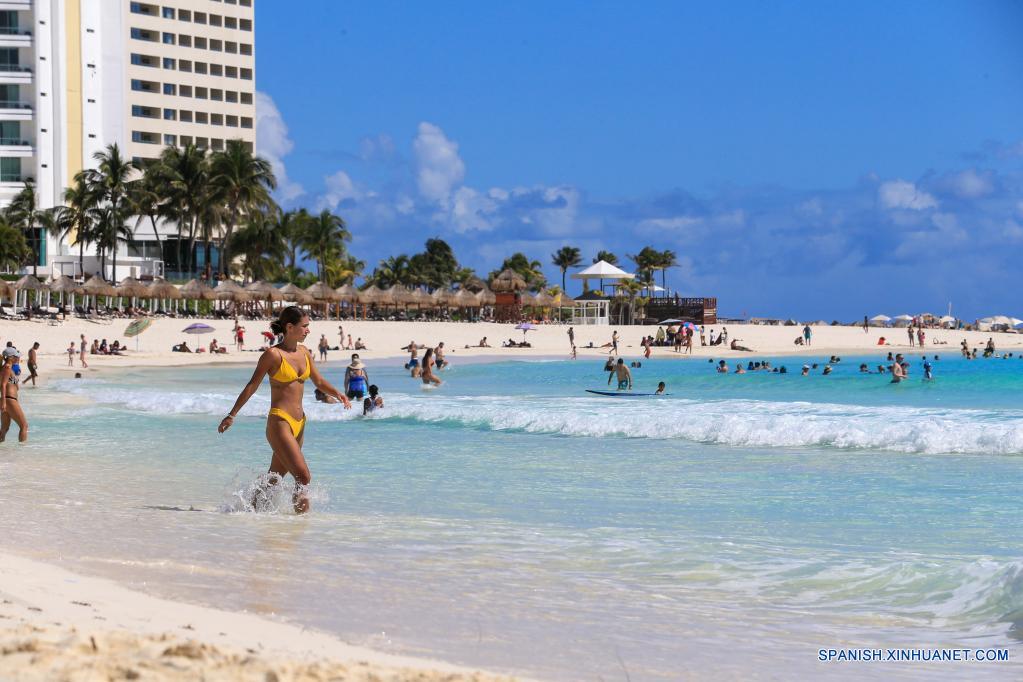 Una mujer disfruta de su tiempo libre en la playa Gaviota Azul, en Cancún, estado de Quintana Roo, México, el 6 de noviembre de 2021. (Xinhua/Fito Valdéz)