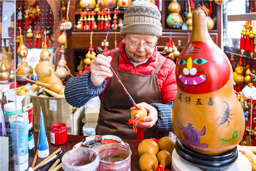 Una trabajadora muestra un sombrero de tigre del artesano Gao Yong en Nanjing, provincia de Jiangsu, este de China, 11 de enero de 2022.