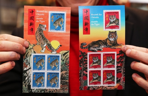 El servicio postal de Francia, La Poste, emitió el sábado dos sellos con motivo del próximo nuevo año del Tigre, a iniciarse el 1 de febrero.