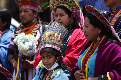 Colombia: Personas de la comunidad indígena Inga participan en una ceremonia tradicional