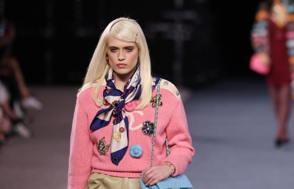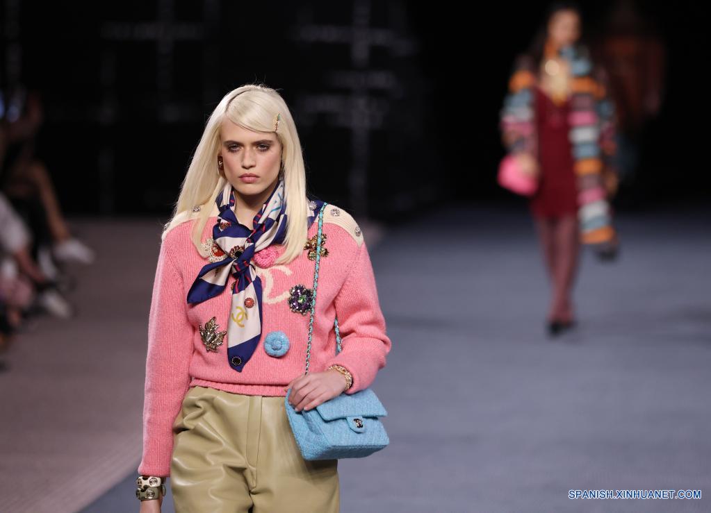 Una modelo presenta una creación de las colecciones listas para usar Otoño/Invierno 2022 de la casa de moda francesa Chanel durante la Semana de la Moda de París, en París, Francia, el 8 de marzo de 2022 (