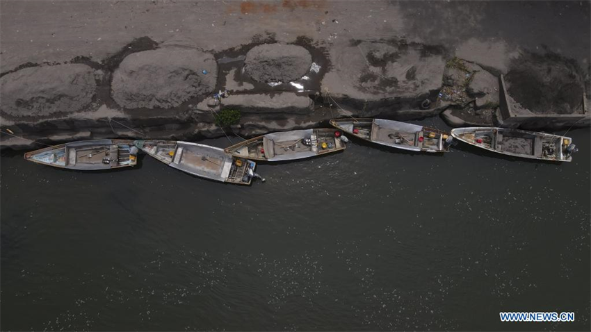 Imagen tomada con un dron de lanchas en la orilla del río Lempa, en el departamento de Usulután, El Salvador, el 18 de marzo de 2022. El río Lempa es fuente de agua potable de alrededor de 1,5 millones de habitantes del área metropolitana de San Salvador. El Día Mundial del Agua se conmemora anualmente el 22 de marzo para recordar la relevancia del vital líquido.