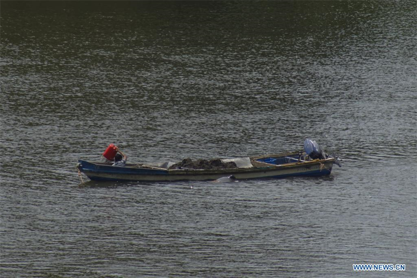 Personas sacan arena del fondo del río Lempa, en el departamento de Usulután, El Salvador, el 18 de marzo de 2022. El río Lempa es fuente de agua potable de alrededor de 1,5 millones de habitantes del área metropolitana de San Salvador. El Día Mundial del Agua se conmemora anualmente el 22 de marzo para recordar la relevancia del vital líquido.