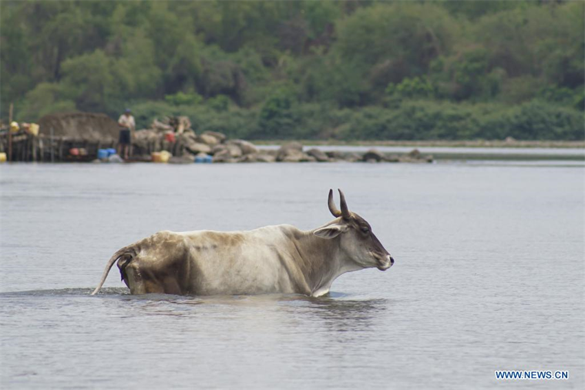 Una vaca se refresca en el río Lempa, en el departamento de Usulután, El Salvador, el 18 de marzo de 2022. El río Lempa es fuente de agua potable de alrededor de 1,5 millones de habitantes del área metropolitana de San Salvador. El Día Mundial del Agua se conmemora anualmente el 22 de marzo para recordar la relevancia del vital líquido.