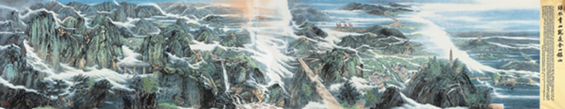 "Montañas verdes y aguas cristalinas hacen las veces de montañas de oro y plata" es una pintura en tinta de Ru Feng de la Academia de Arte de China. Siguiendo el concepto de que las primeras son tan valiosas como el oro o la plata, la obra busca mostrar el progreso de China en la preservación ecológica y la protección del medio ambiente.
