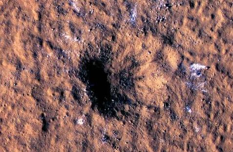 La impresionante imagen muestra bloques de hielo que fueron proyectados en la superficie y un cráter de unos 150 metros de diámetro y 20 de profundidad, el más grande observado desde la puesta en servicio del orbitador MRO, hace 16 años.