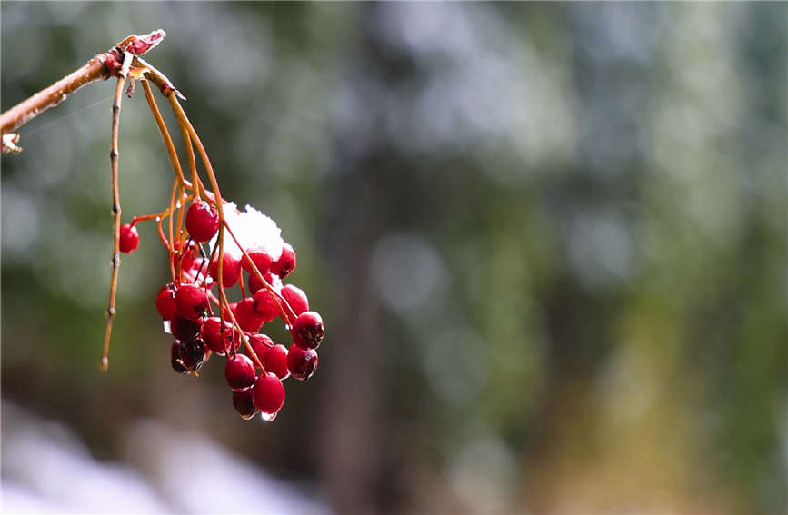Frutas silvestres cubiertas de nieve en el poblado de Qiongkushitai, distrito de Tekes, en la Región Autónoma Uigur de Xinjiang, noroeste de China.
