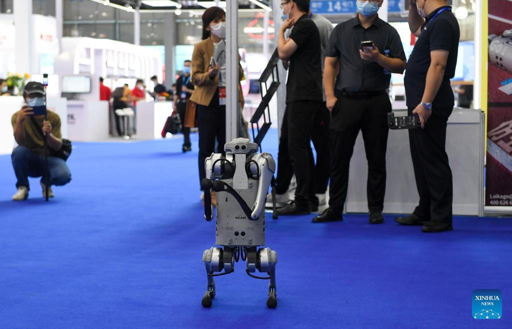 Un perro robot en la 24 ª Feria Hi-Tech de China (CHTF, por sus siglas en inglés) en Shenzhen, provincia de Guangdong, en el sur de China, el 15 de noviembre de 2022.