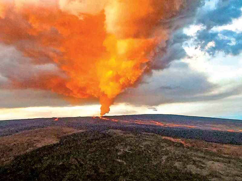 Mauna Loa, tan vasto que cubre la mitad de la isla de Hawái, no entraba en erupción desde 1984. Luego arrojó lava durante 22 días, produciendo flujos que llegaron a sólo siete kilómetros de la ciudad de Hilo, ubicada al noreste del volcán.