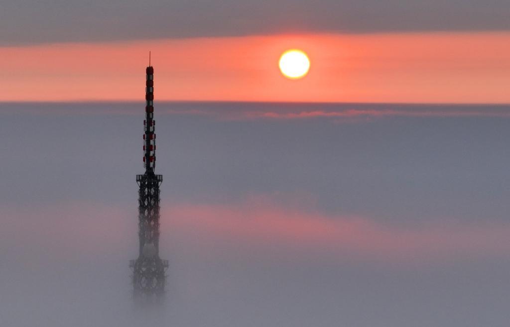 Imagen del 1 de enero de 2023 del paisaje del amanecer en el punto escénico de la montaña Hengshan, en Hengyang, en la provincia de Hunan, en el centro de China. (Xinhua/Cao Zhengping)