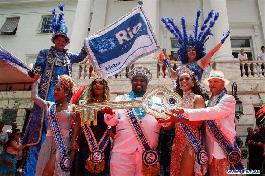 El alcalde de la ciudad brasileña de Río de Janeiro, Eduardo Paes, entregó el viernes la llave de la ciudad al Rey Momo, lo que marcó el inicio oficial del Carnaval 2023.