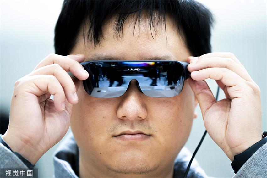 Un visitante prueba las gafas de visión de Huawei durante el Mobile World Congress 2023 en Barcelona, España, 27 de febrero de 2023.