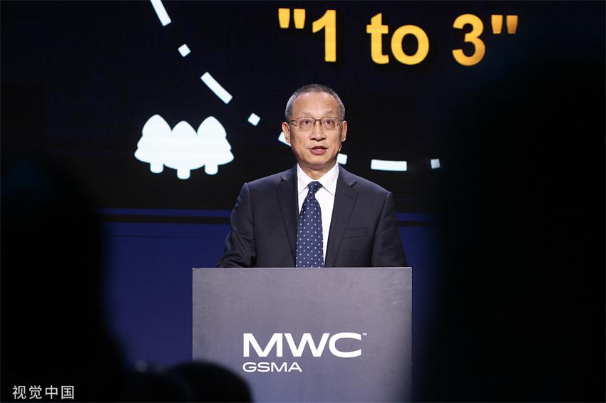 Dong Xin, director ejecutivo de China Móvil, pronuncia un discurso en la jornada inaugural del Mobile World Congress 2023 en Barcelona, España, 27 de febrero de 2023.