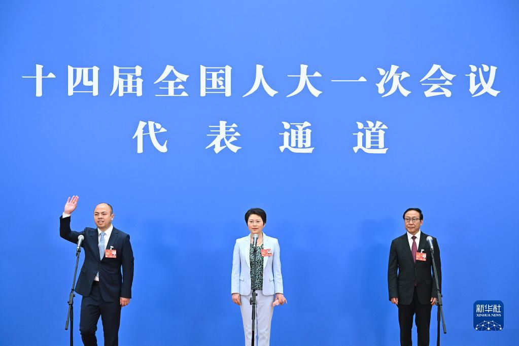 Los diputados de China llevan a cabo entrevistas con los medios y responden sus preguntas.