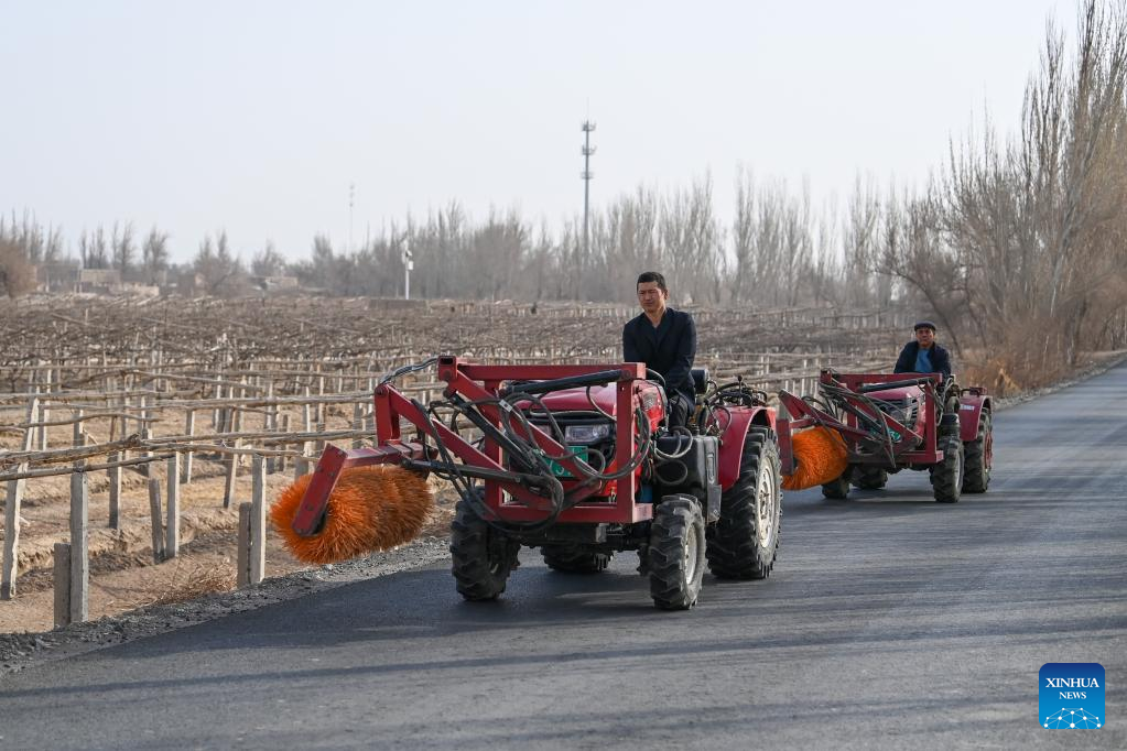 Agricultores excavan vides de uva en Xinjiang
