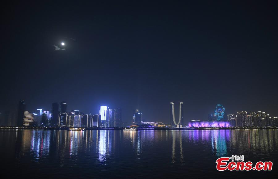 Un espectáculo de luces con los emblemas de Hangzhou iluminó la ciudad con 500 drones para dar inicio a la cuenta atrás de 200 días de los Juegos Asiáticos Hangzhou 2022 en el Estadio Central de Deportes Olímpicos de Hangzhou, apodado “el Gran Loto”, en la provincia oriental china de Zhejiang, 7 de marzo de 2023.