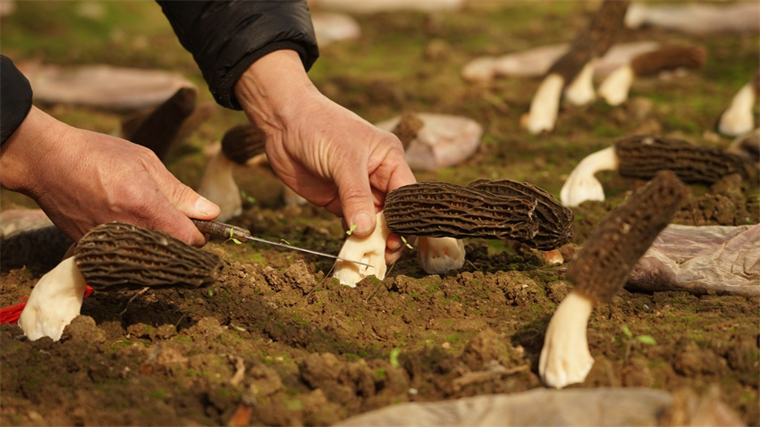 Morchella esculenta es un hongo medicinal comestible que se cultiva en invernaderos en el condado de Luanping de Chengde, en la provincia de Hebei.