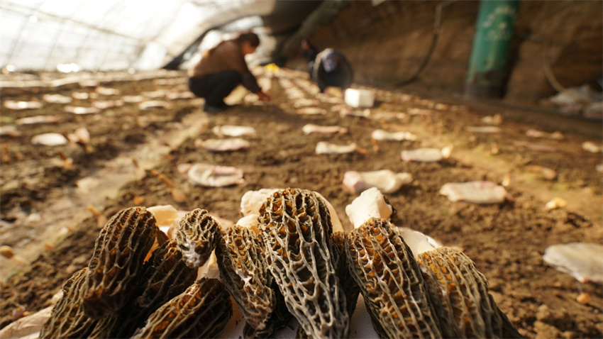 Morchella esculenta es un hongo medicinal comestible que se cultiva en invernaderos en el condado de Luanping de Chengde, en la provincia de Hebei.