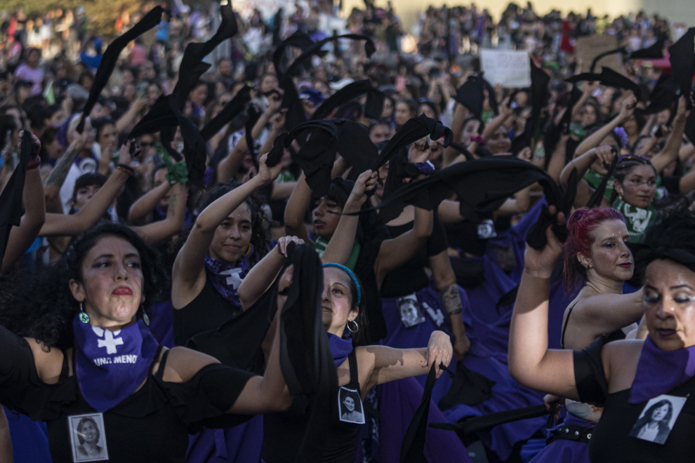 Pañuelos negros en honor a las desaparecidas durante la dictadura del general Augusto Pinochet en una marcha contra la violencia de género en Santiago de Chile. Esteban Felix / LA PRESSE