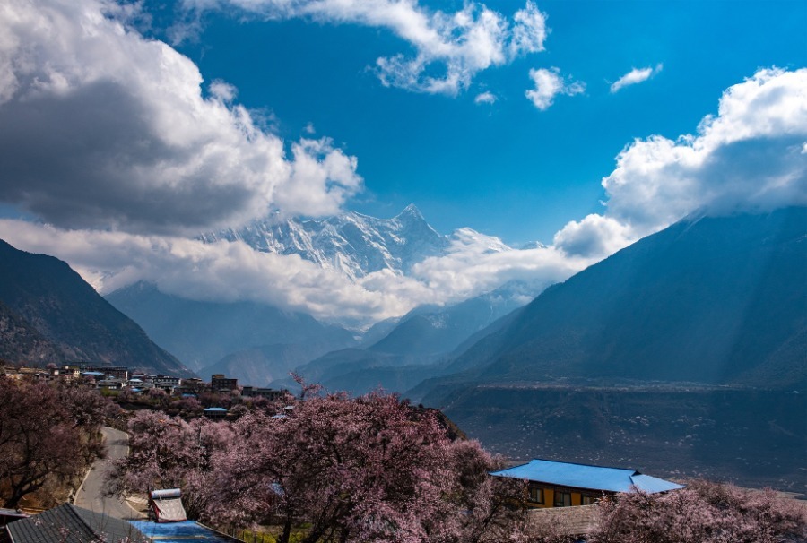 La foto tomada el 1 de abril de 2020 muestra flores de durazno a lo largo del Gran Cañón del río Yarlung Zangbo, en la región autónoma del Tíbet, en el suroeste de China. La majestuosa belleza de las montañas nevadas en el horizonte, junto con un paisaje florido al pie de la colina, crean aquí una estampa primaveral única. El Gran Cañón del río Yarlung Zangbo tiene un promedio de 5.000 metros de profundidad, lo que lo convierte en el más profundo del mundo, seguido por el Gran Cañón de EE. UU. y el Gran Cañón de Colia en Perú. [Foto/Xinhua]