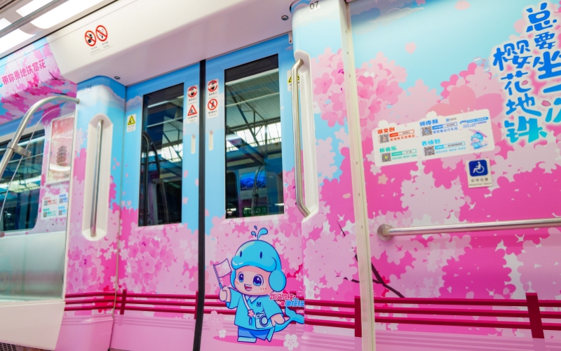 Las líneas 1 y 8 del metro en Wuhan, provincia de Hubei, en el centro de China, pusieron en funcionamiento trenes con la temática de los cerezos en flor el 8 de marzo, y seguirán funcionando hasta el 30 de abril.