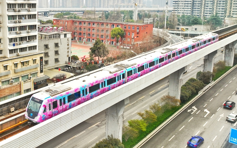 Trenes de metro con temática de flores de cerezo debutan en Wuhan