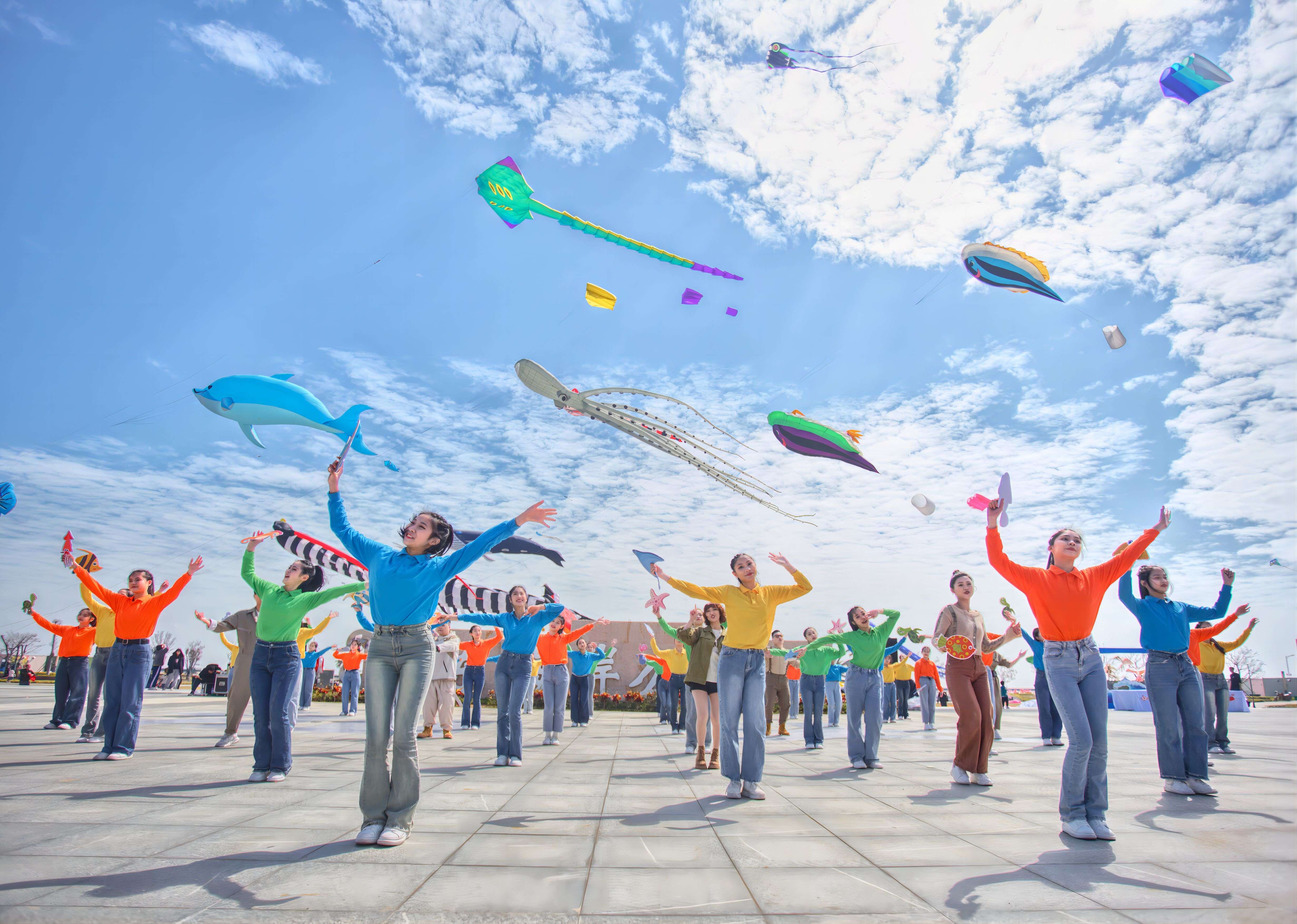 Una variedad de ellas con especies marinas como delfines, ballenas y pulpos surcaron el cielo. Los turistas aprovecharon el colorido fondo para tomar fotos, pasear o correr por el césped mientras un grupo de adolescentes bailaba para recibir la primavera.