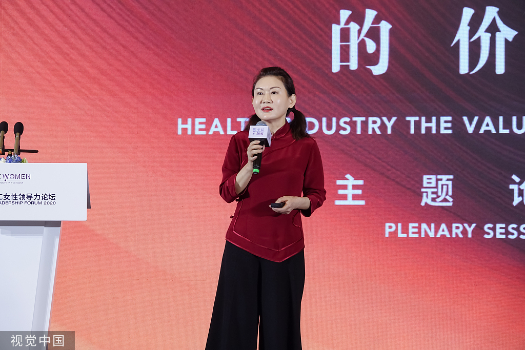 Zhao Yan, presidenta y directora de Huaxi International Investment Group, habla en el Foro de Liderazgo de Mujeres APEC 2020 en Shenzhen, provincia de Guangdong, el 26 de diciembre de 2020. [Foto/VCG]