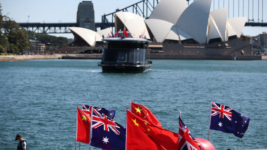 Las banderas nacionales china y australiana en Sídney, Australia. [Foto/Xinhua]