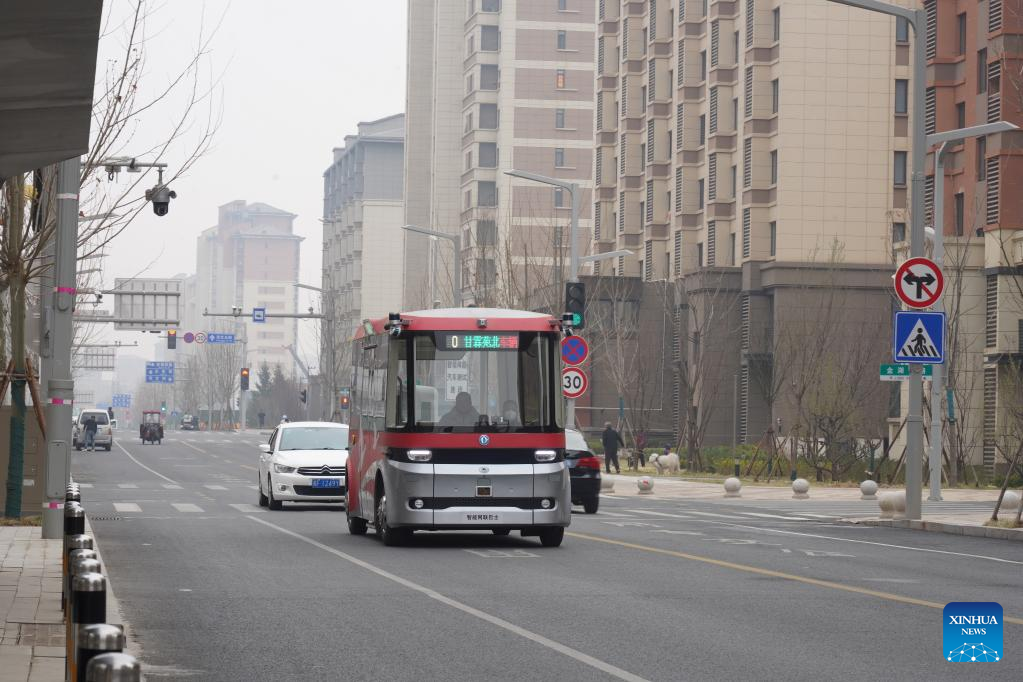 Autobús conectado inteligente en operación de prueba en la Nueva Área de Xiong'an, en el norte de China