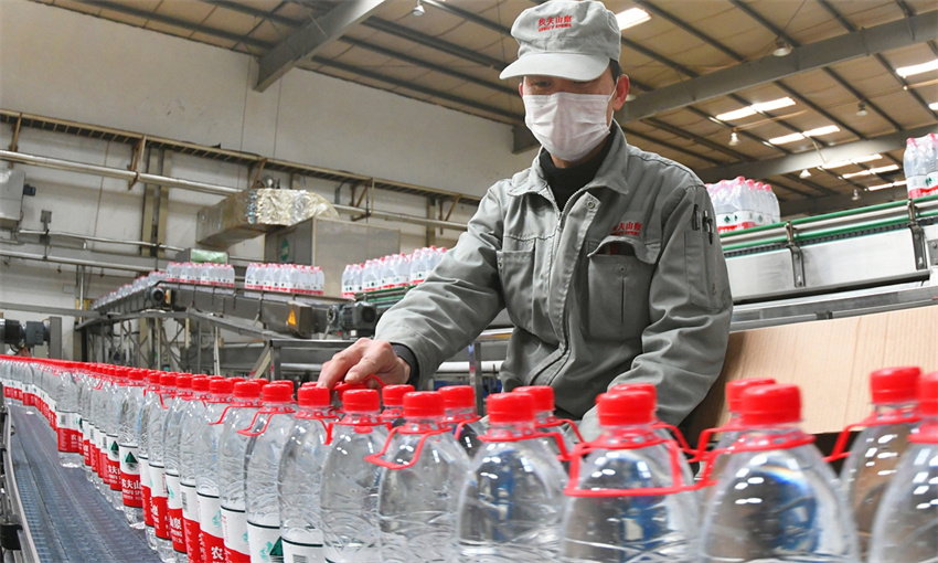 Un trabajador de Nongfu Spring en Hangzhou, provincia oriental china de Zhejiang, febrero de 2020.
