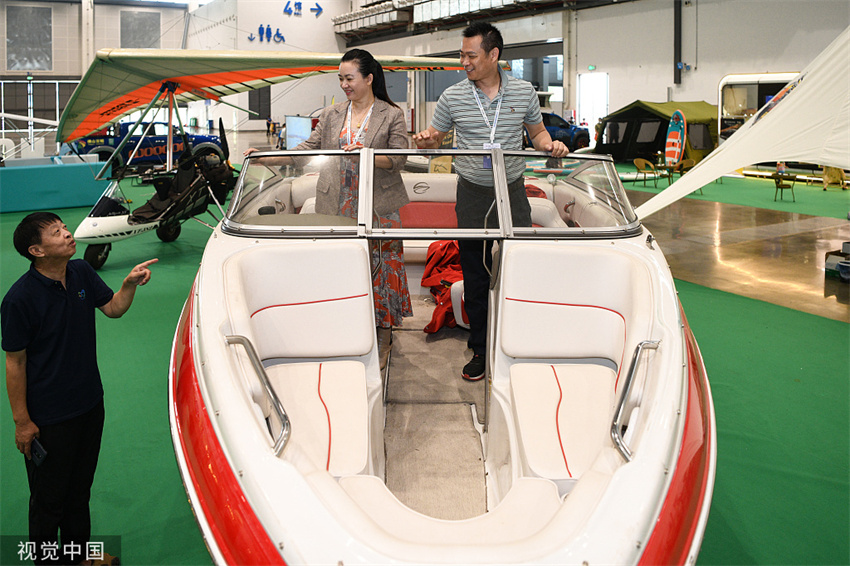 Presentación de un yate en la II Exposición de importación de artículos y equipos deportivos de China (Hainan) en Haikou, provincia de Hainan, 25 de marzo de 2023.