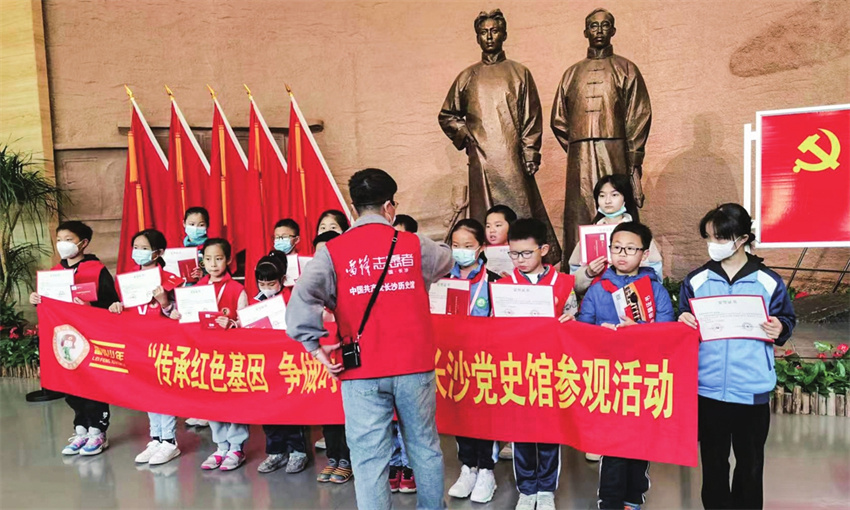 En el Museo de Historia del PCCh de Hunan, un guía voluntario de 11 años de apellido Wang atrajo la atención de la gente. Según el personal del museo, más de unos pocos miles de visitantes vienen al museo todos los días. Por lo tanto, el museo capacita a un grupo de guías cada año, ofreciendo de dos a tres cursos por semana. Después de un riguroso proceso de selección y exámenes, pueden convertirse en verdaderos voluntarios.