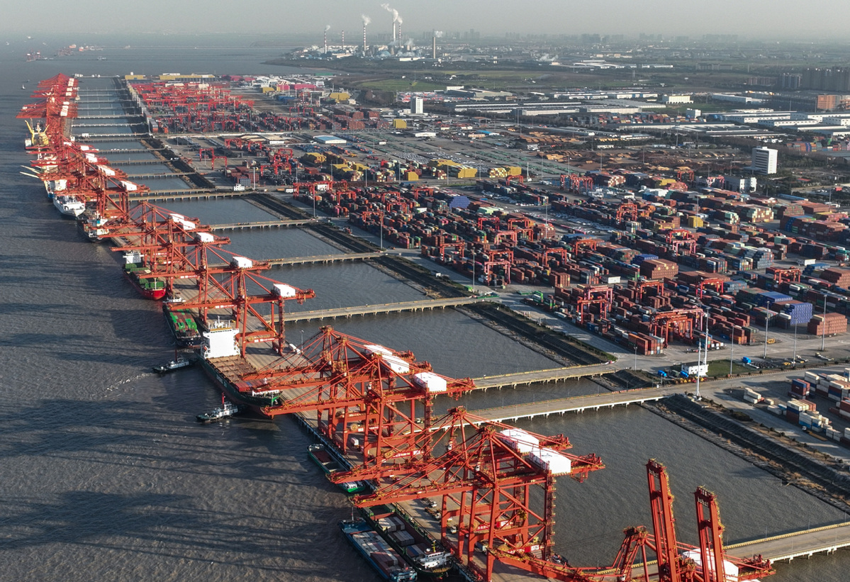 Esta foto aérea tomada el 13 de marzo de 2023 muestra una terminal de contenedores del puerto de Taicang en Suzhou, provincia oriental china de Jiangsu. [Foto/Xinhua]