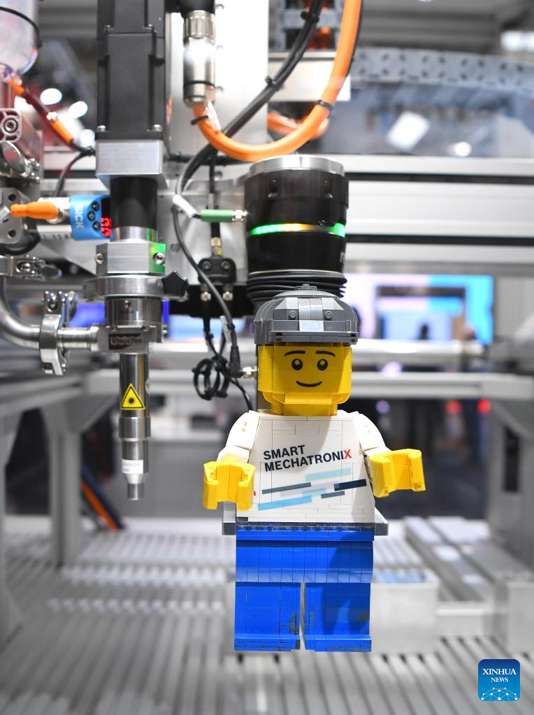 Un robot inteligente se muestra durante la Hannover Messe en Alemania, el 18 de abril de 2023. La principal feria comercial de ingeniería mecánica y eléctrica de Alemania comenzó el lunes en Hannover, bajo el tema "Transformación industrial: marcando la diferencia". (Xinhua/Ren Pengfei)
