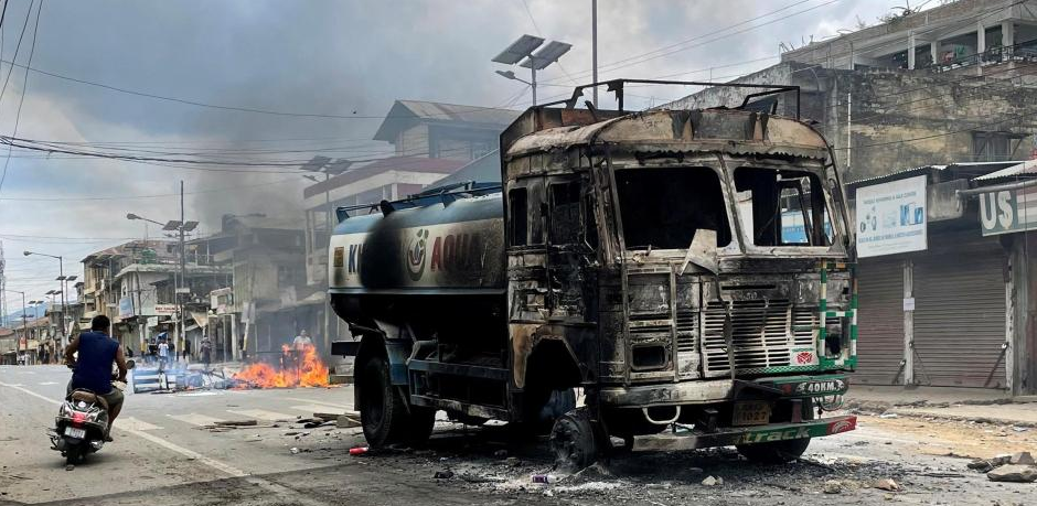Paisaje después del vandalismo en Churachandpur, localidad de las tribus kukis del sur de Manipur, en el nordeste de India. (Reuters)