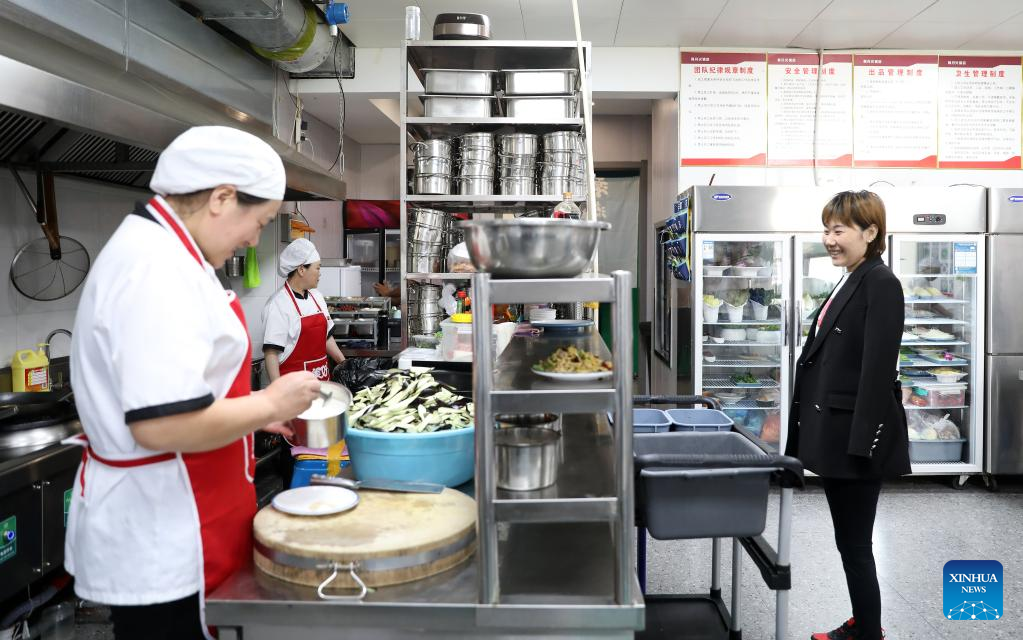 Han Dan habla con una empleada en su restaurante de hot-pot en Fuxin, provincia nororiental china de Liaoning, el 11 de mayo de 2023. Han Dan perdió sus brazos a la edad de 6 años, pero gradualmente logró aprender a escribir y nadar. Cuando tenía 27 años, Han se casó y comenzó su propio negocio. Como empresaria, ha superado dificultades ganando más de un millón de seguidores en Internet. Como madre de dos hijos, cuida bien de ellos y está a punto de dar a luz a su tercero.
