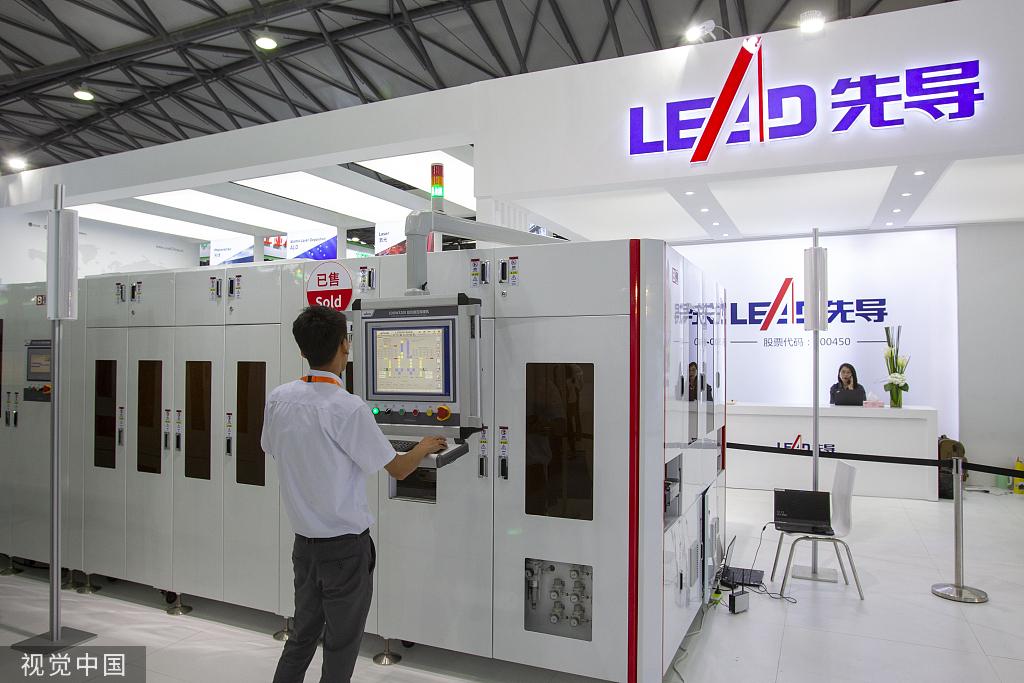 Un visitante prueba una máquina en el stand de Wuxi Lead Intelligent Equipment en la XIII Exposición Internacional de Generación de Energía Fotovoltaica y Energía Inteligente SNEC en Shanghai, el 6 de junio de 2019. [Foto/VCG]