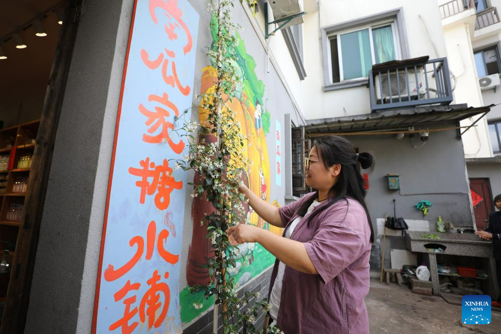 A la vez que se desarrolla el sector del turismo, el pueblo se compromete a fomentar la actividad empresarial. Más de 200 empresarios se han establecido en el pueblo y están impulsando el desarrollo de la economía rural. (Xinhua/Du Xiaoyi)