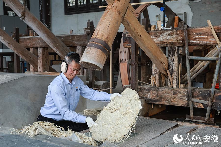 Un trabajador elabora papel Xuan. (People's Daily Online / Zhang Jun)