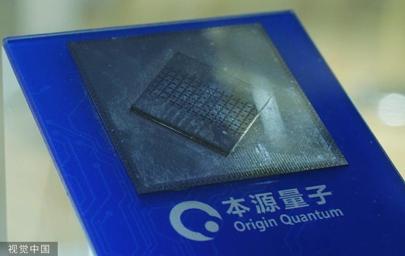 Un chip de Origin Quantum expuesto en un evento para el Día de la Marca China 2023 en Shanghai, el 10 de mayo de 2023. [Foto/VCG]