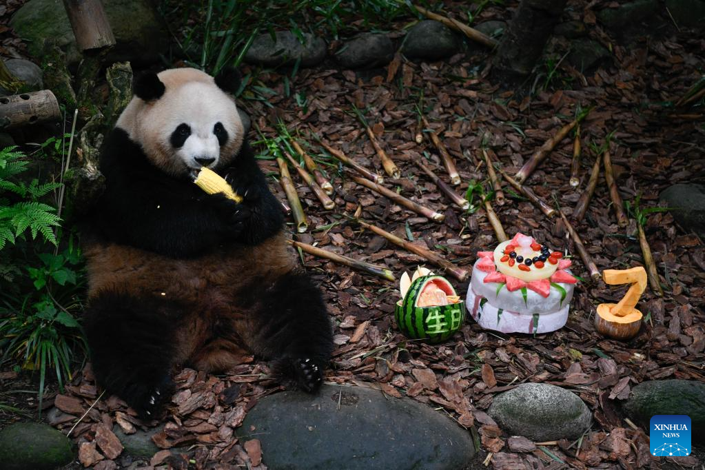Panda gigante Mei Lan celebra su séptimo cumpleaños en Base de Investigación de Cría de Pandas Gigantes de Chengdu