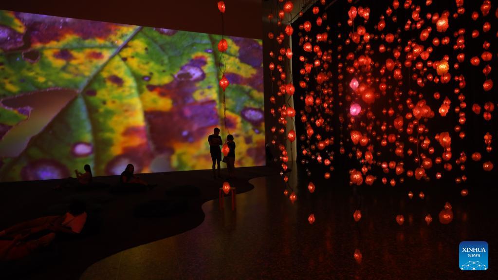 Pixel Forest y Worry Will Vanish, presentaciones de la artista suiza Pipilotti Rist, se exhiben en el Museo de Bellas Artes de Houston, Texas, Estados Unidos, el 31 de mayo de 2023. La exposición de Pipilotti Rist titulada Pixel Forest and Worry Will Vanish se inauguró en dicho museo el 12 de marzo y estará abierta al público hasta el 4 de septiembre. (Xinhua/Xu Jianmei)