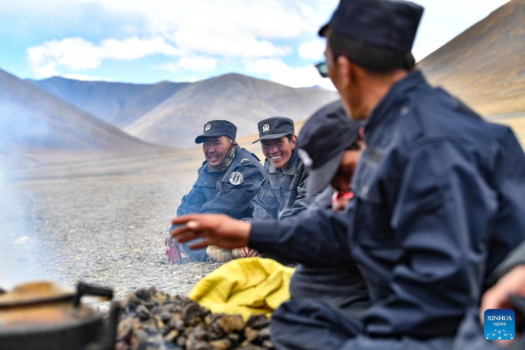 Miembros del equipo de defensa fronteriza preparan el almuerzo en el municipio de Changgo de la ciudad de Xigaze, región autónoma del Tíbet en el suroeste de China, el 2 de junio de 2023. El municipio de Changgo, con una elevación promedio de más de 5.000 metros, es un municipio fronterizo adyacente a Nepal con una frontera de 105 kilómetros.