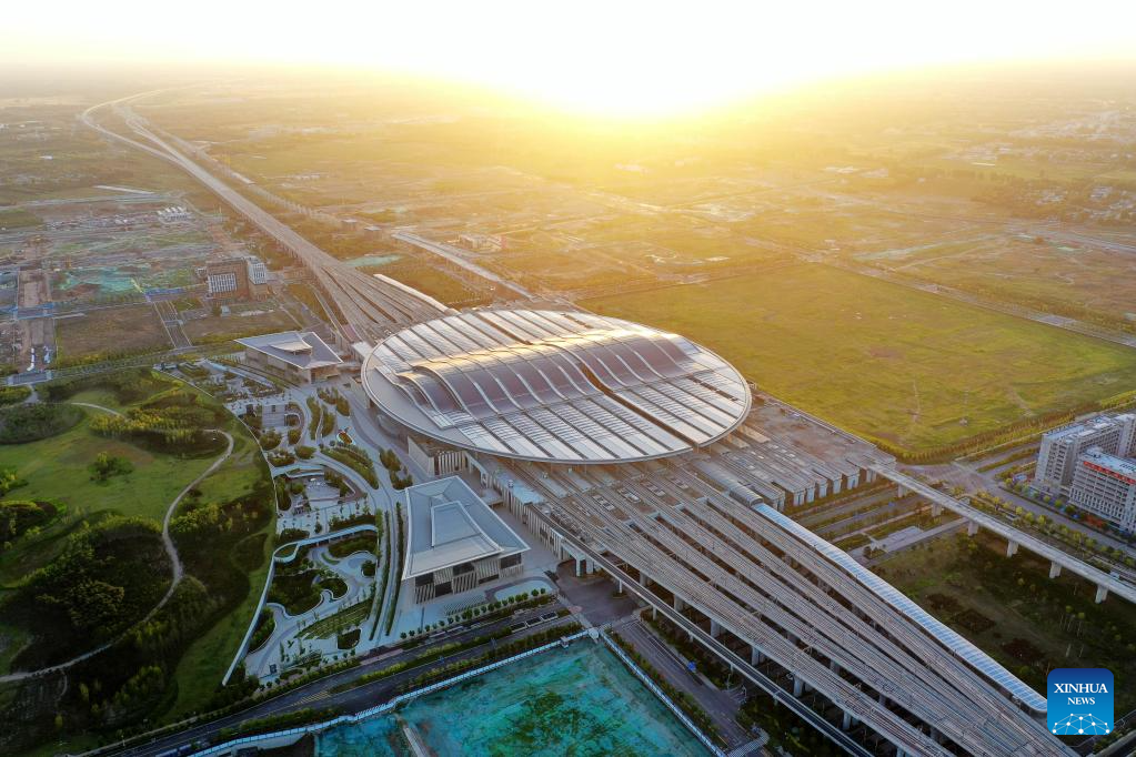Vista aérea del 2 de junio de 2023 de la Estación del Ferrocarril de Xiong'an, en la Nueva Área de Xiong'an, en la provincia de Hebei, en el norte de China. Ubicada a unos de 100 kilómetros al suroeste de Beijing, la Nueva Área de Xiong'an ha sido diseñada como un importante receptor de funciones previamente ubicadas en Beijing pero que no son esenciales para su función como capital de China. Seis años después, la Nueva Área de Xiong'an, la "ciudad del futuro" de China, ofrece un vistazo a la visión china de la modernidad.