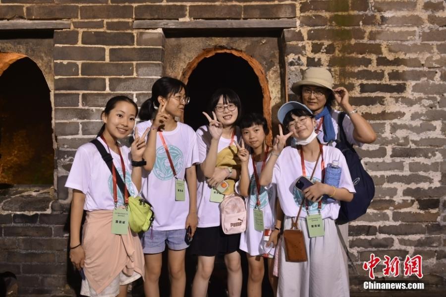 Jóvenes extranjeros disfrutan de la vista nocturna de la Gran Muralla