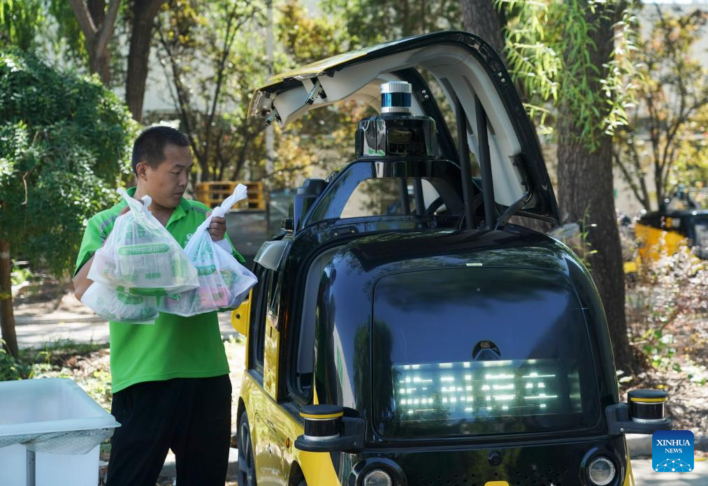 A medida que el mercado de entrega de China se ha expandido rápidamente en los últimos años, cada vez más consumidores tienden a usar teléfonos inteligentes para pedir comida, o comprar ropa y otros artículos en línea para ahorrar tiempo. Estas tecnologías de entrega de alta tecnología han servido en algunas ciudades, incluidas Beijing y Shenzhen, para mejorar la eficiencia. (Xinhua/Ren Chao)